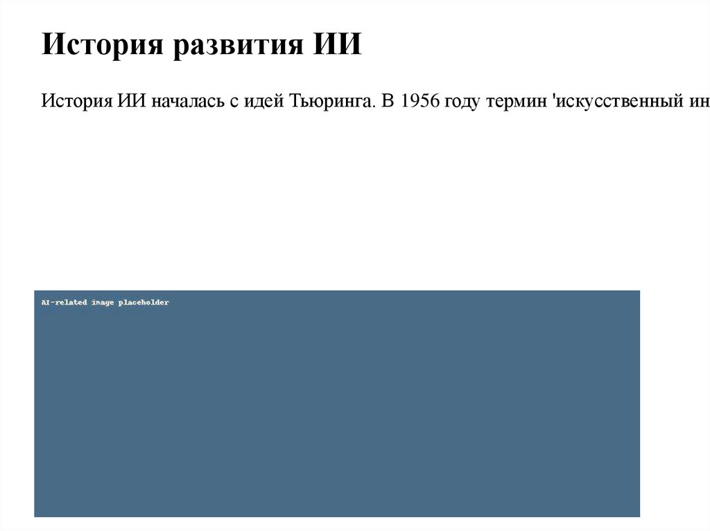 История развития ИИИстория ИИ началась с идей Тьюринга. В 1956 году термин 'искусственный инт