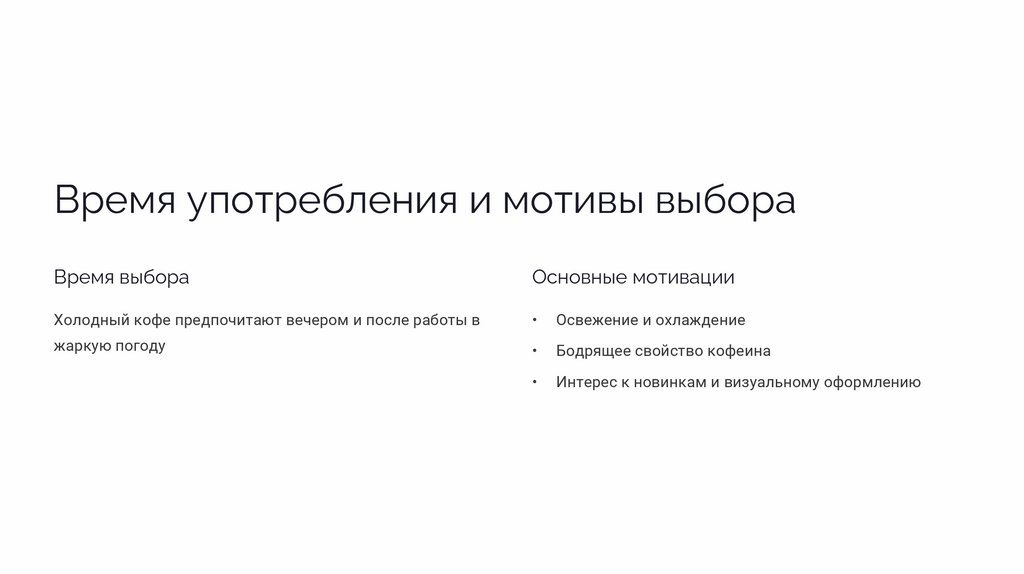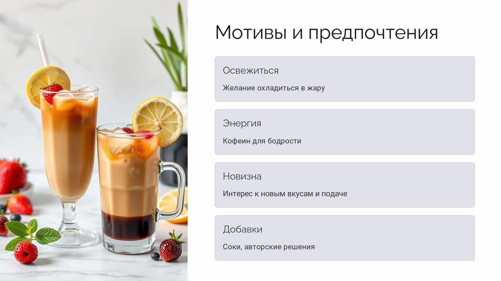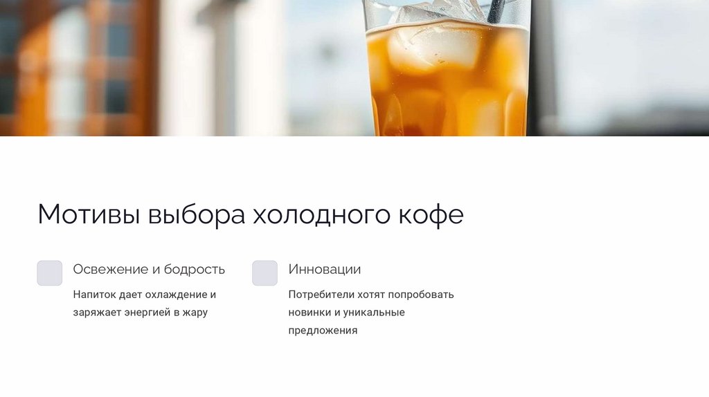 Мотивы выбора холодного кофеОсвежение и бодрость