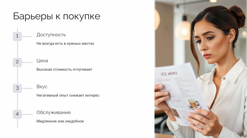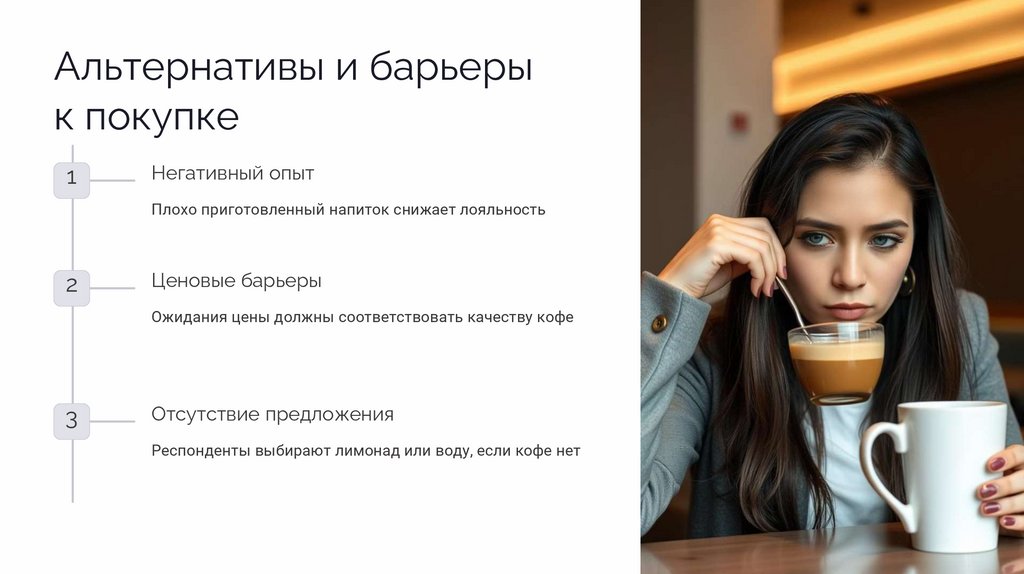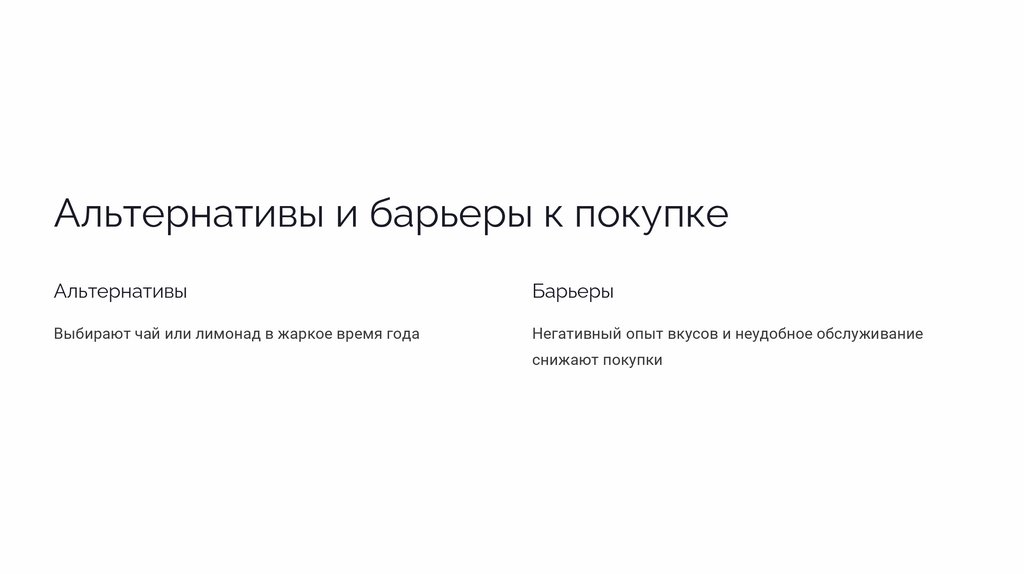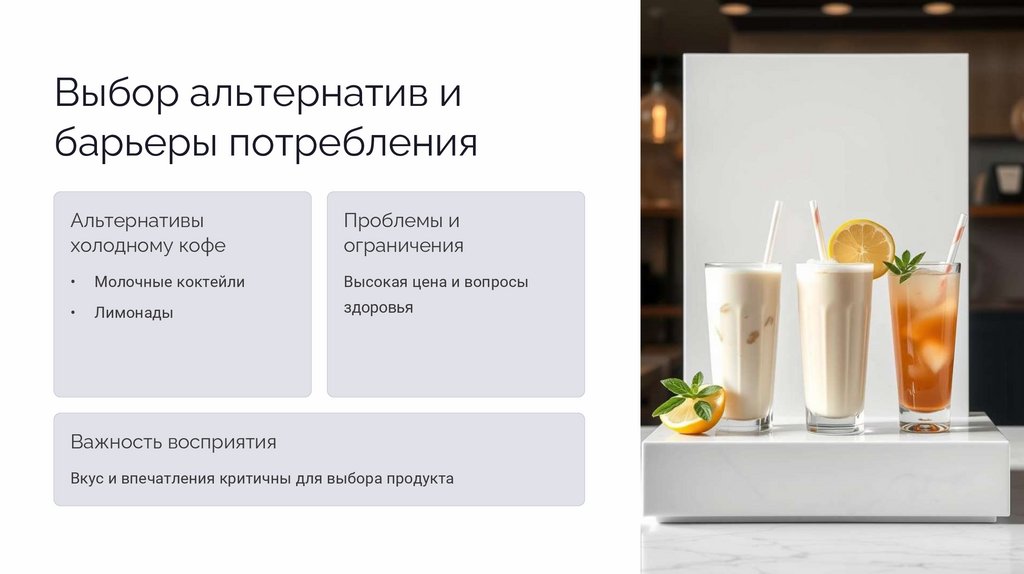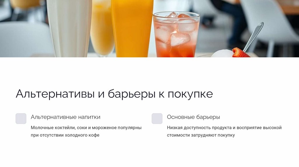 Альтернативы и барьеры к покупкеАльтернативные напитки