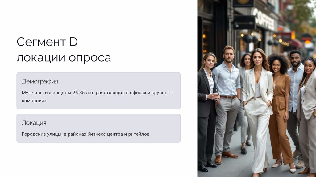 Мужчины и женщины 26-35 лет, работающие в офисах и крупных