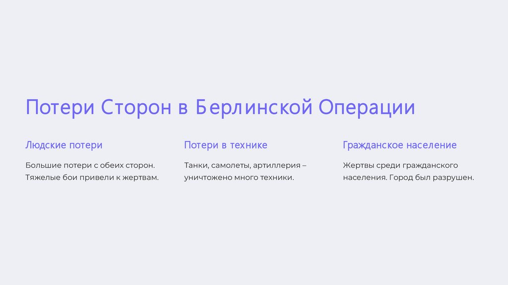 Потери Сторон в Б ерл инской ОперацииЛюдские потери