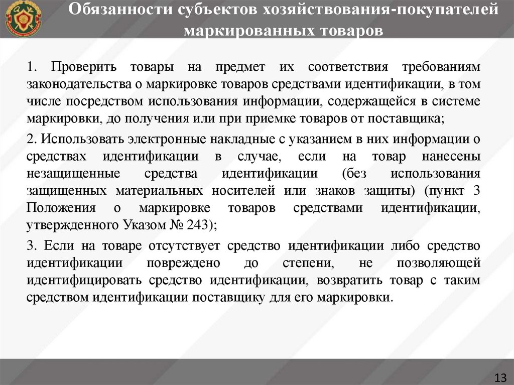 7. Обязанности субъектов хозяйствования по маркировке товаров средствами идентификации