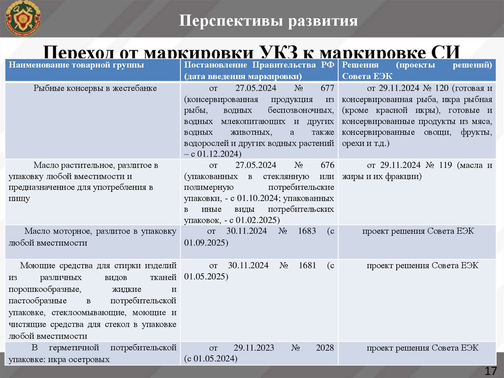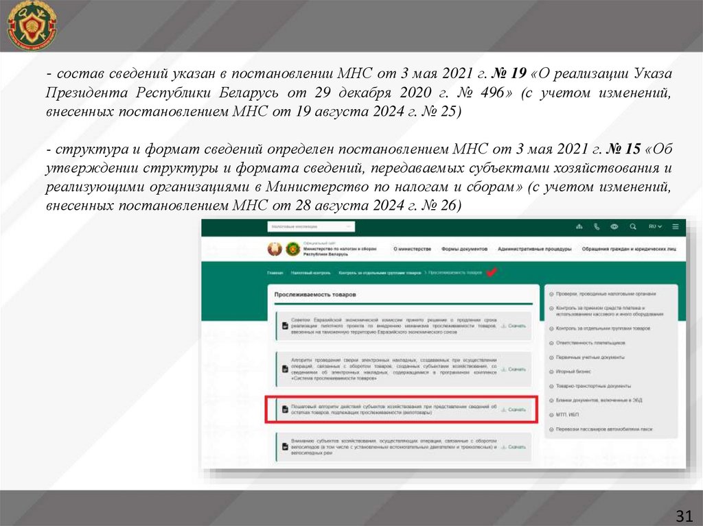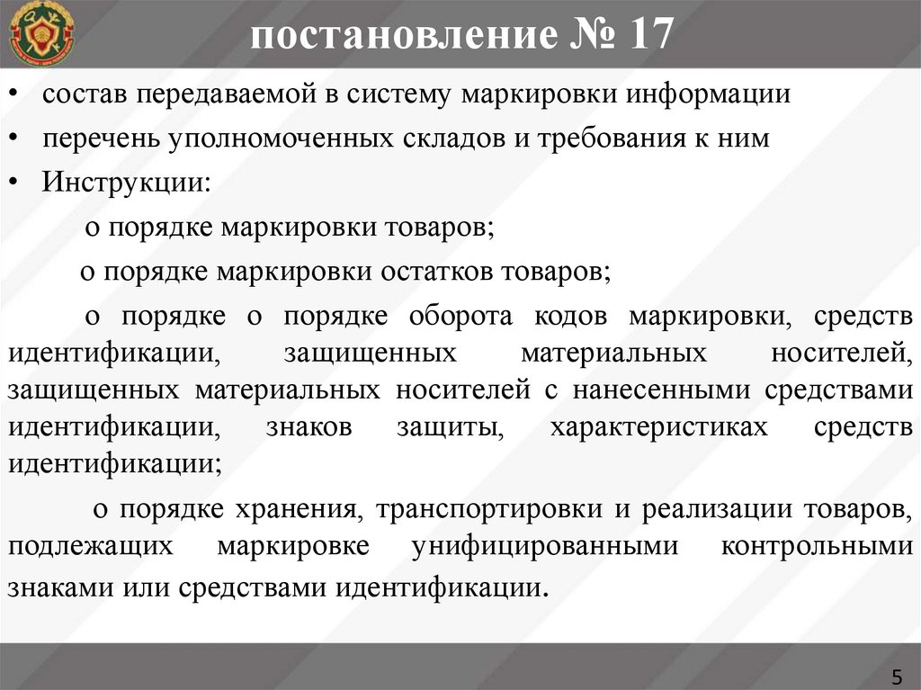 • состав передаваемой в систему маркировки информации• перечень уполномоченных складов и требования к ним