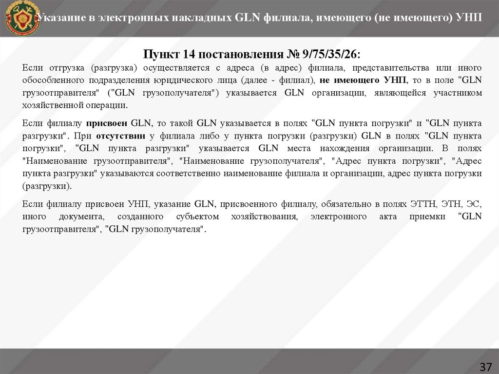 • GTIN (по товарам, подлежащим товарной нумерации и штриховому кодированию).