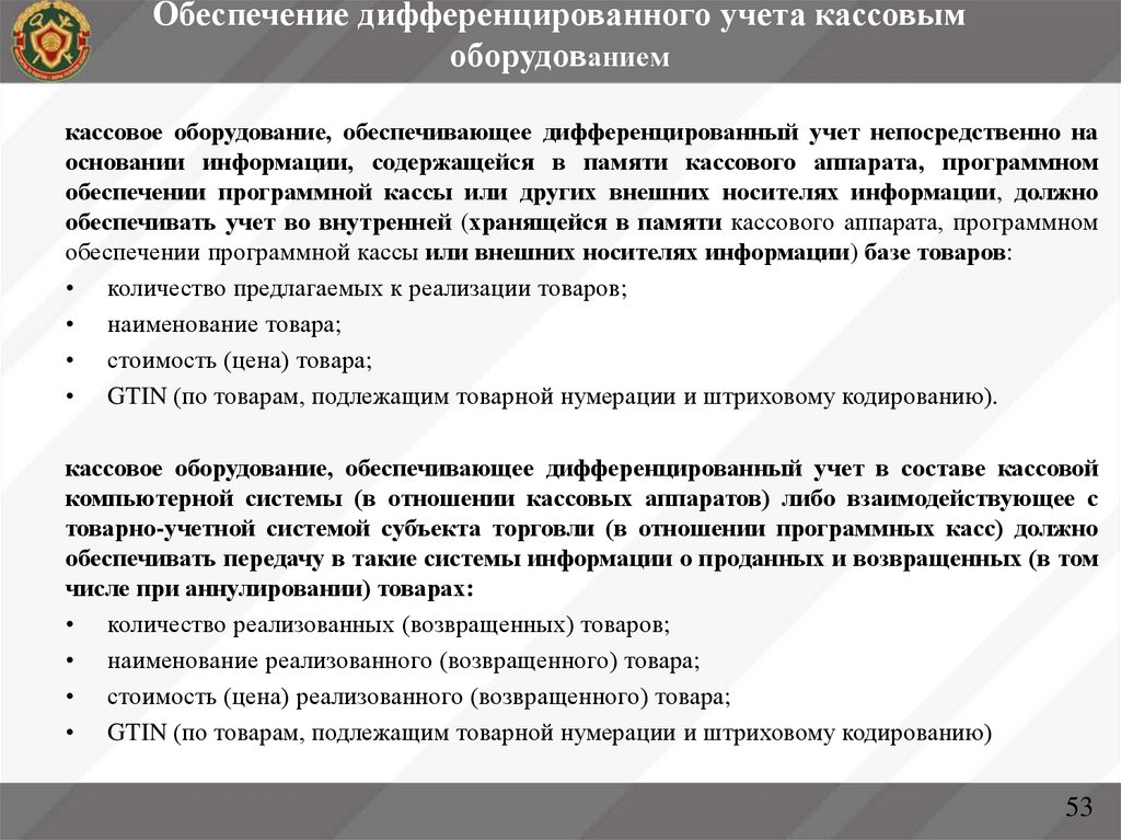 54. Обеспечение дифференцированного учета кассовым оборудованием