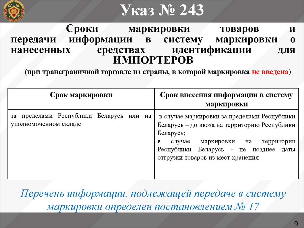 Указ Президента Республики Беларусь от 10 июня 2011 г. № 243