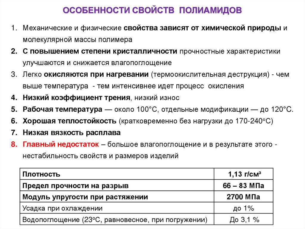8. Главный недостаток – большое влагопоглощение и в результате этого нестабильность свойств и размеров изделий