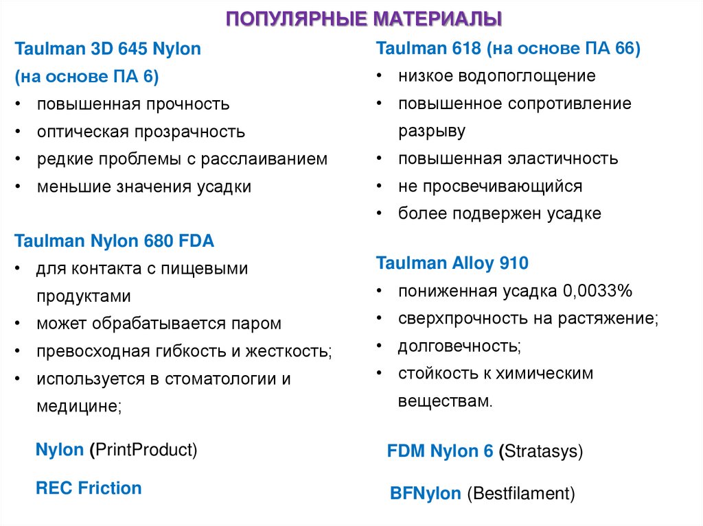 ПОПУЛЯРНЫЕ МАТЕРИАЛЫTaulman 3D 645 Nylon