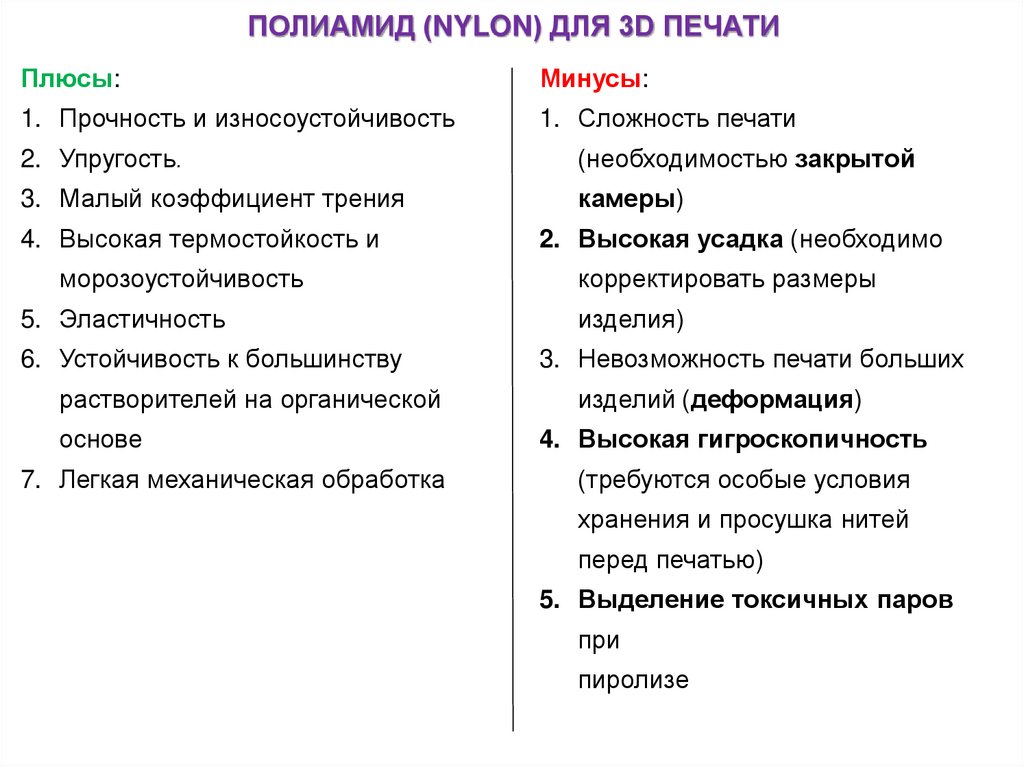 ПОЛИАМИД (NYLON) ДЛЯ 3D ПЕЧАТИПлюсы: