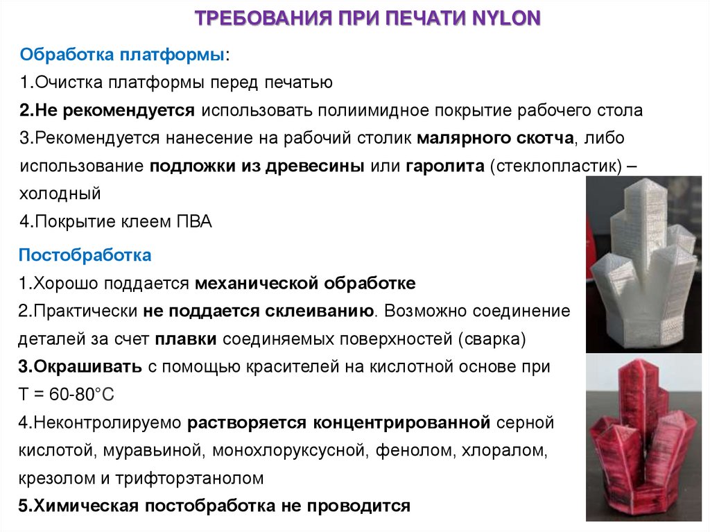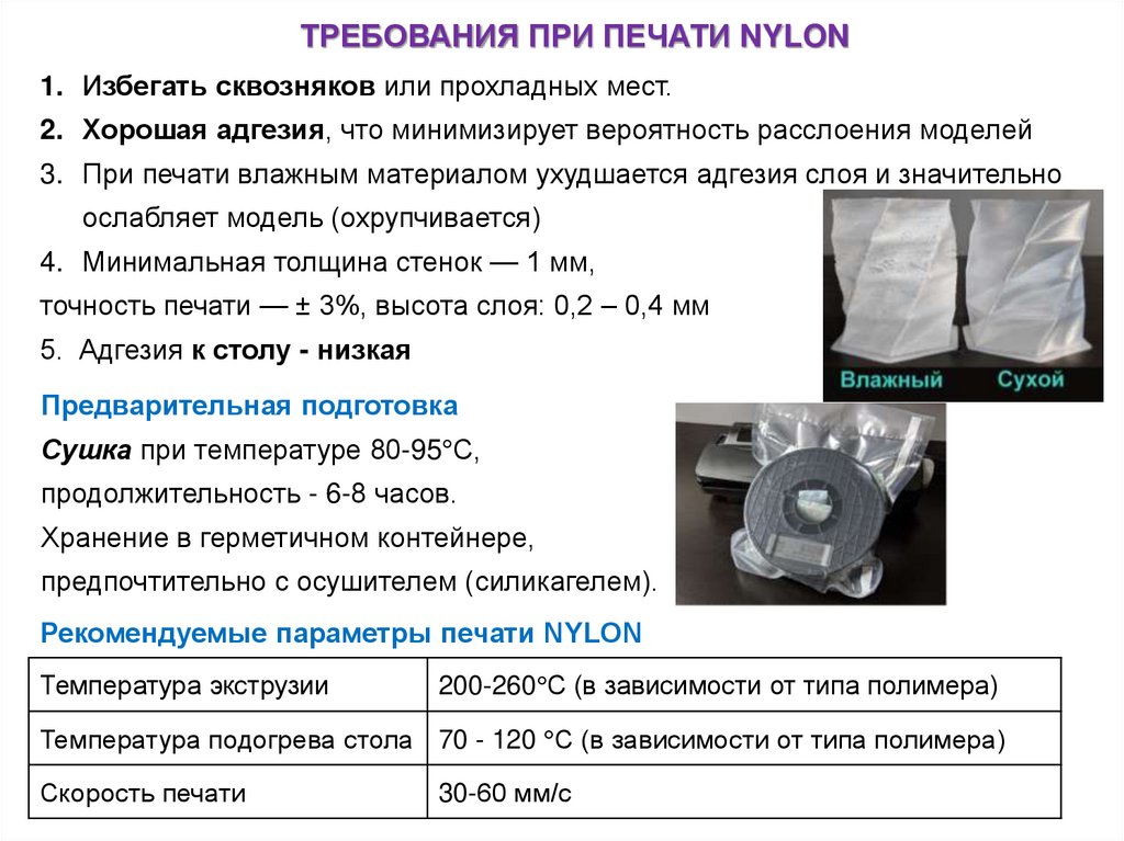 ТРЕБОВАНИЯ ПРИ ПЕЧАТИ NYLON1. Избегать сквозняков или прохладных мест.