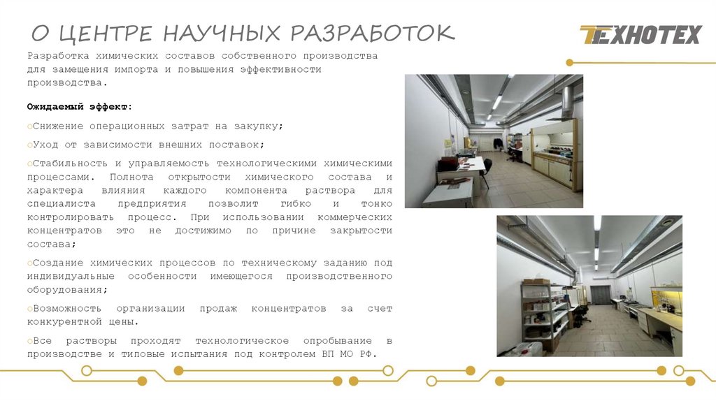О ЦЕНТРЕ НАУЧНЫХ РАЗРАБОТОКРазработка химических составов собственного производства
