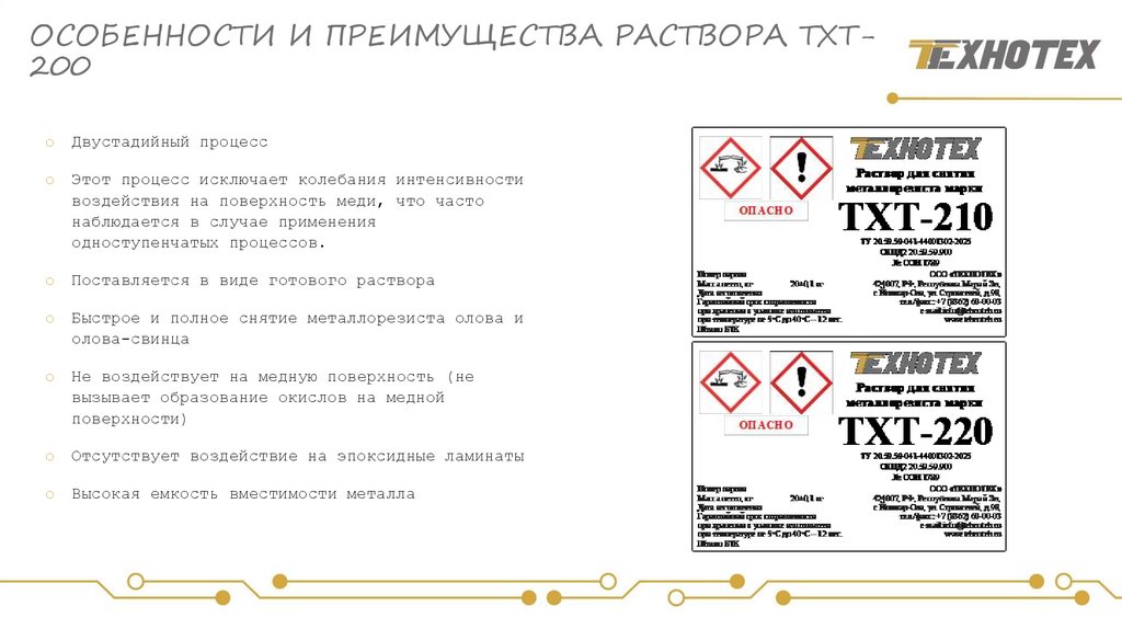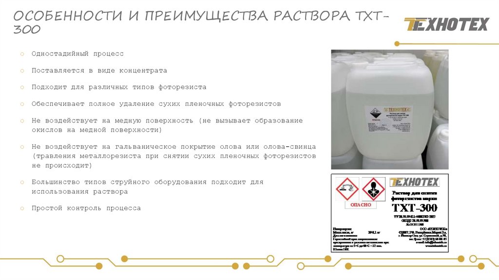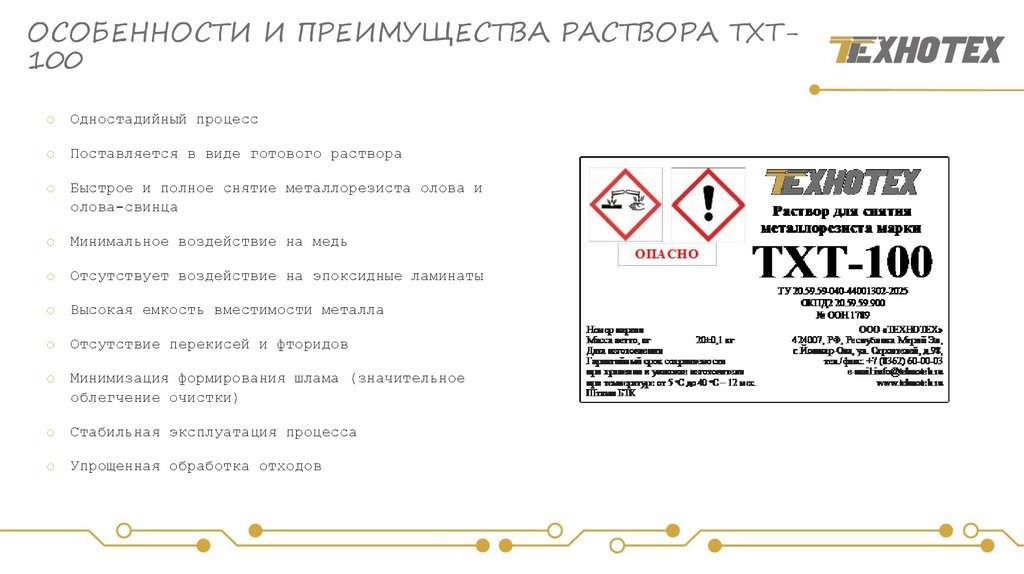 ТХТ-100РАСТВОР ДЛЯ СНЯТИЯ МЕТАЛЛОРЕЗИСТА (ОДНОСТАДИЙНЫЙ