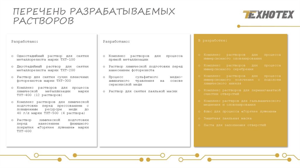 ПЕРЕЧЕНЬ РАЗРАБАТЫВАЕМЫХРАСТВОРОВ