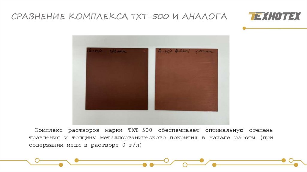 СРАВНЕНИЕ КОМПЛЕКСА ТХТ-500 И АНАЛОГАКомплекс растворов марки ТХТ-500 обеспечивает оптимальную степень