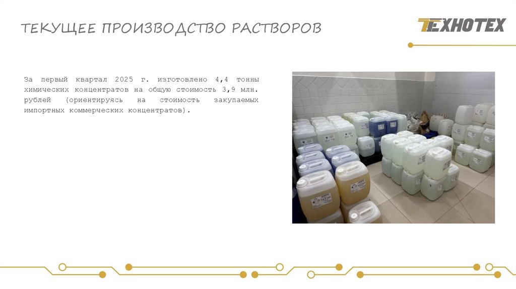 ТЕКУЩЕЕ ПРОИЗВОДСТВО РАСТВОРОВЗа первый квартал 2025 г. изготовлено 4,4 тонны