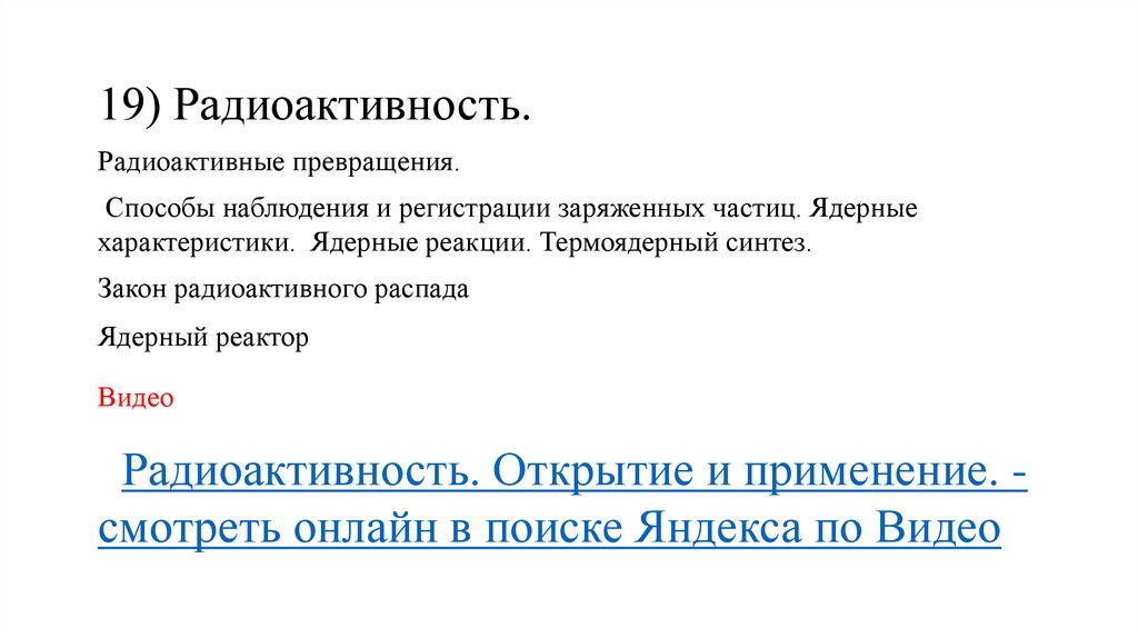 Радиоактивность. Открытие и применение. смотреть онлайн в поиске Яндекса по Видео