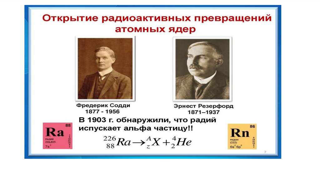 7. Резерфорд, изучая радиоактивное излучение, обнаружил его сложный состав. Он поместил радиоактивный препарат в свинцовый сосуд с
