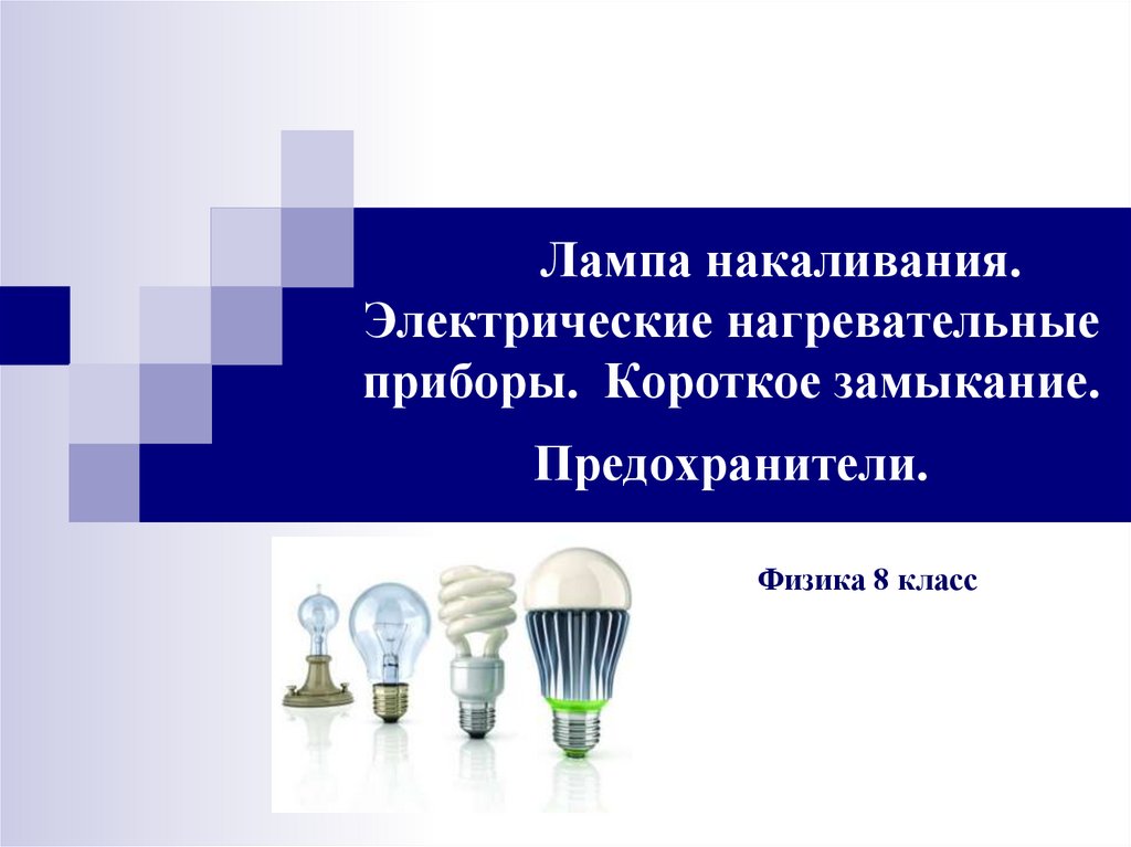 Лампы. Электронагревательные приборы. Короткое замыкание. Предохранители (8 класс)