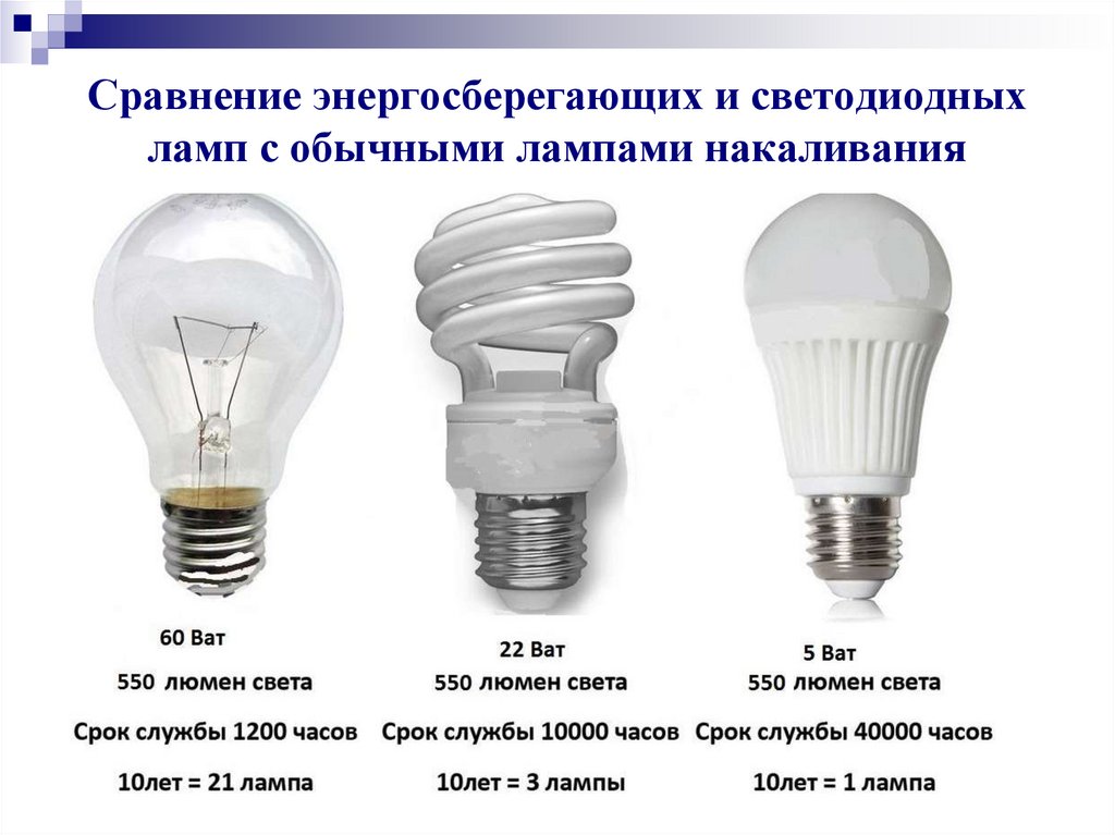 14. Сравнение энергосберегающих и светодиодных ламп с обычными лампами накаливания