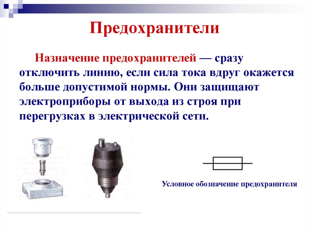 Назначение предохранителей — сразуотключить линию, если сила тока вдруг окажется