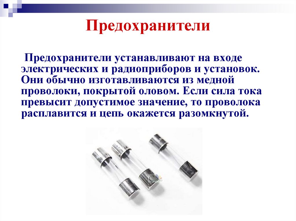 Предохранители устанавливают на входеэлектрических и радиоприборов и установок.