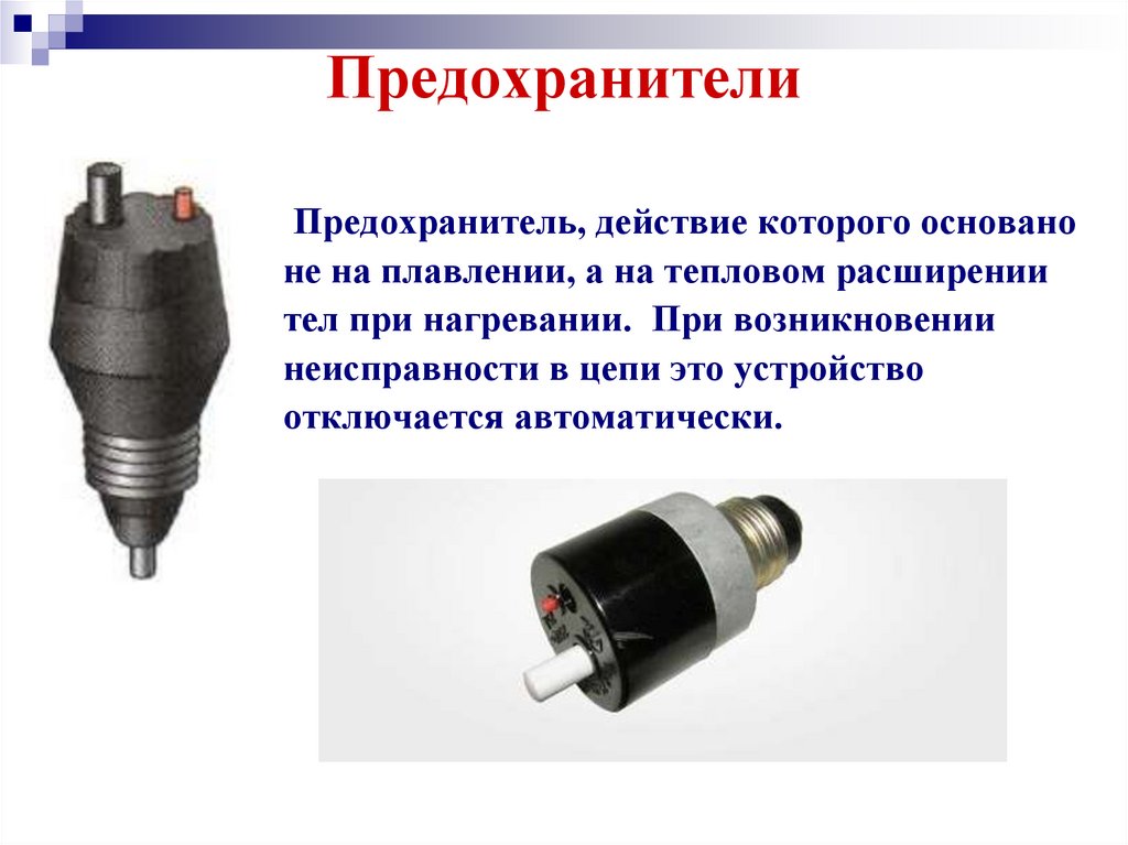 Предохранитель, действие которого основаноне на плавлении, а на тепловом расширении