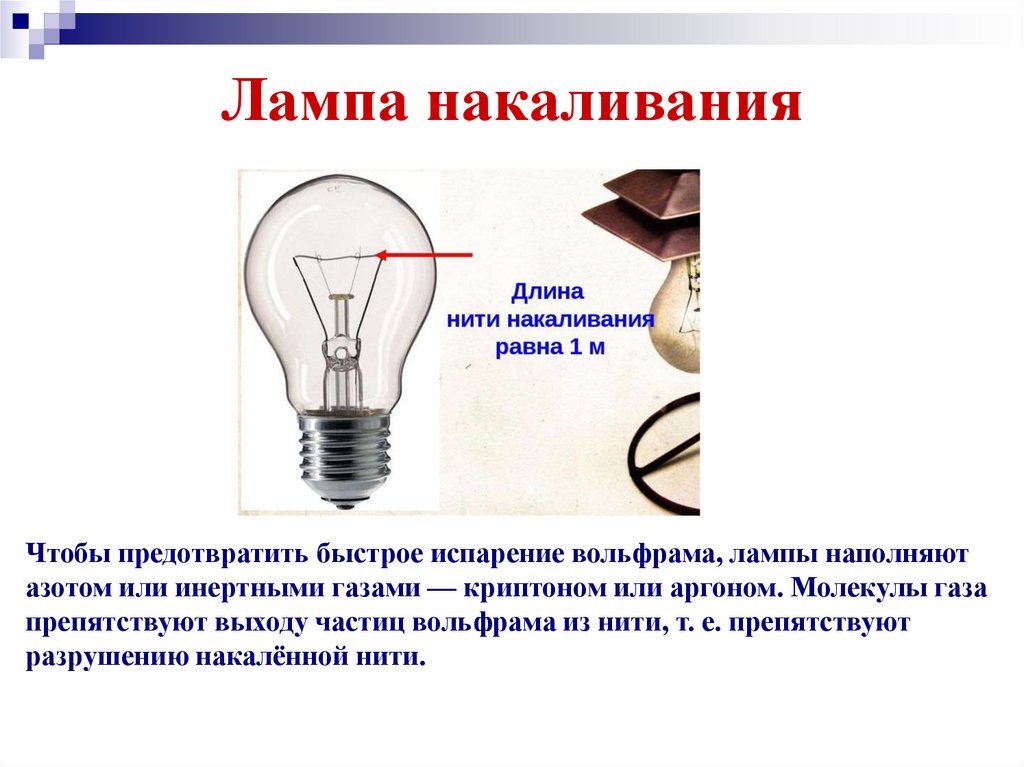 Лампа накаливания — электрический источниксвета, в котором нить накала (спираль)