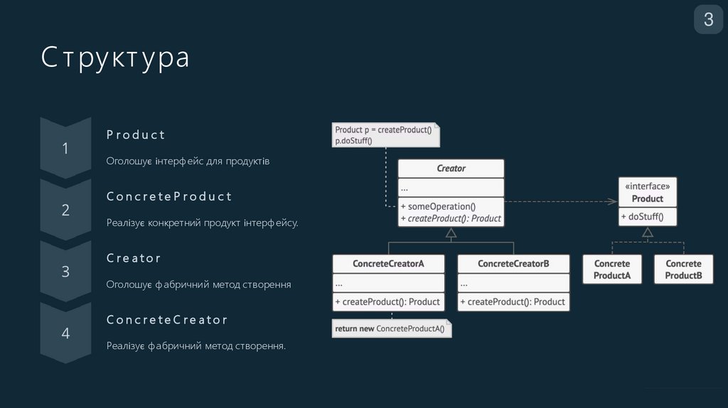 Factory Method— це породжувальний патерн проектування, який визначає загальний інтерф ейс для