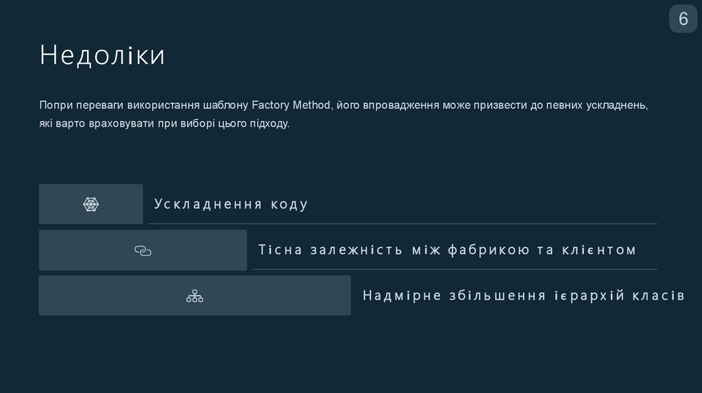 Попри переваги використання шаблону Factory Method, його впровадження може призвести до певних ускладнень,