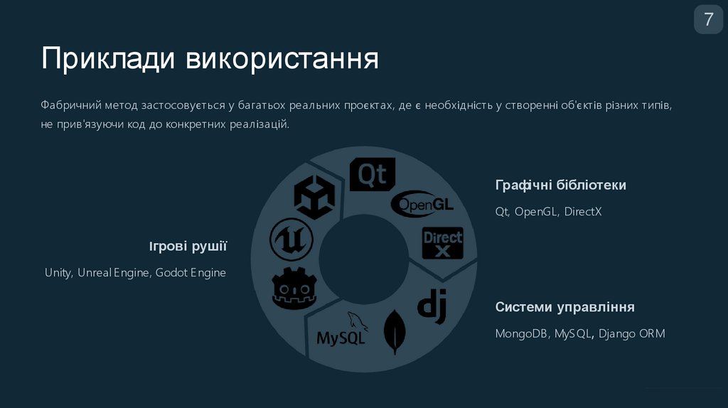 Фабричний метод застосовується у багатьох реальних проєктах, де є необхідність у створенні об'єктів різних типів,