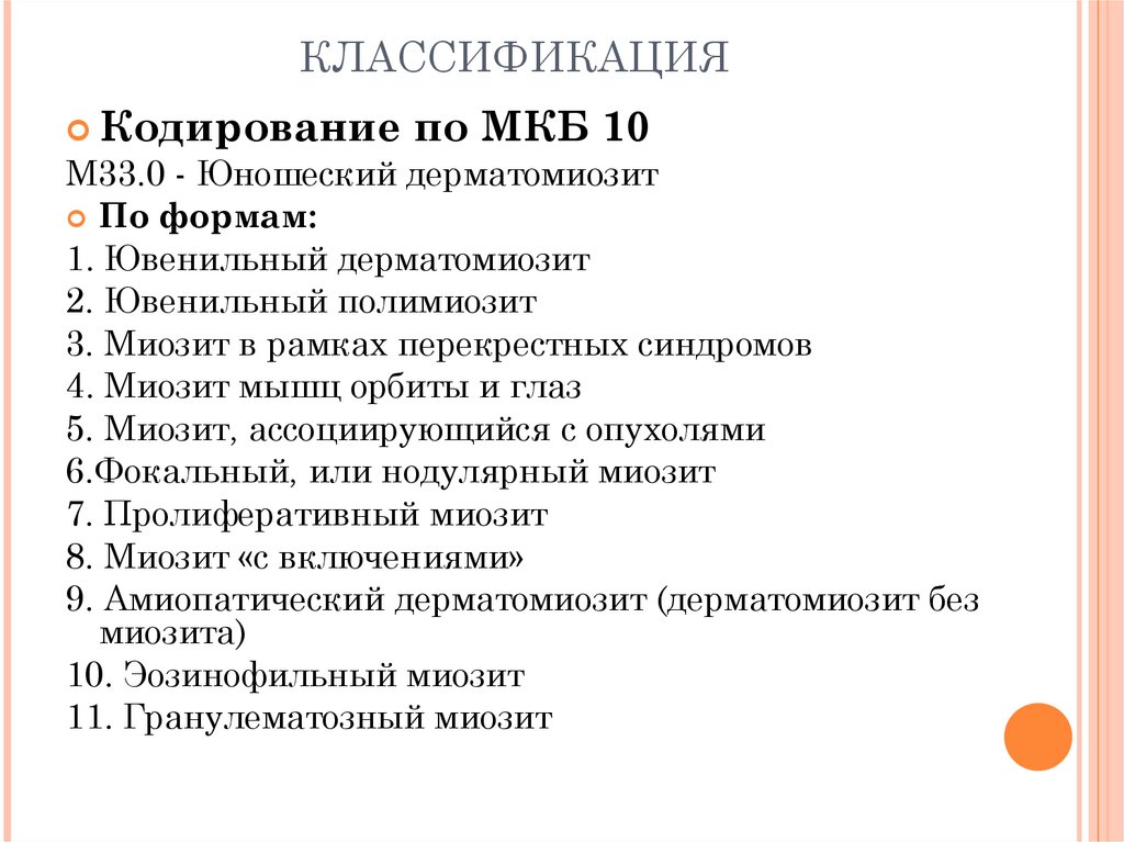 КЛАССИФИКАЦИЯКодирование по МКБ 10