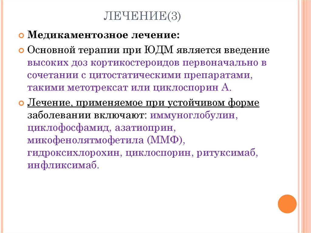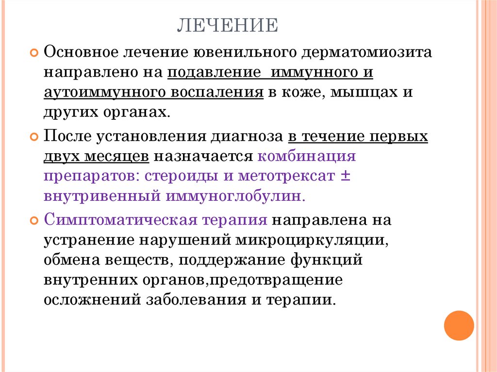 ЛЕЧЕНИЕОсновное лечение ювенильного дерматомиозита