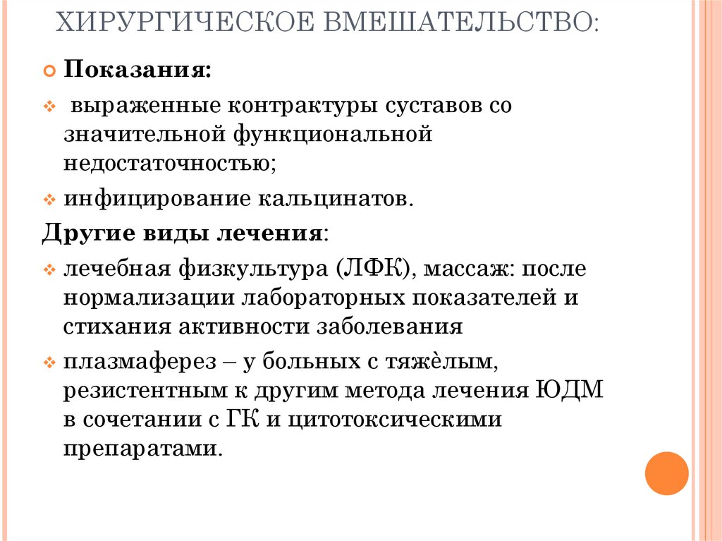 Основной терапии при ЮДМ является введение