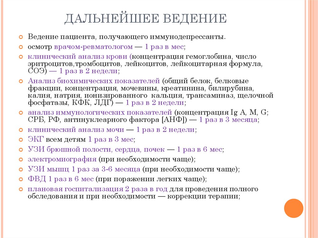 ДАЛЬНЕЙШЕЕ ВЕДЕНИЕВедение пациента, получающего иммунодепрессанты.