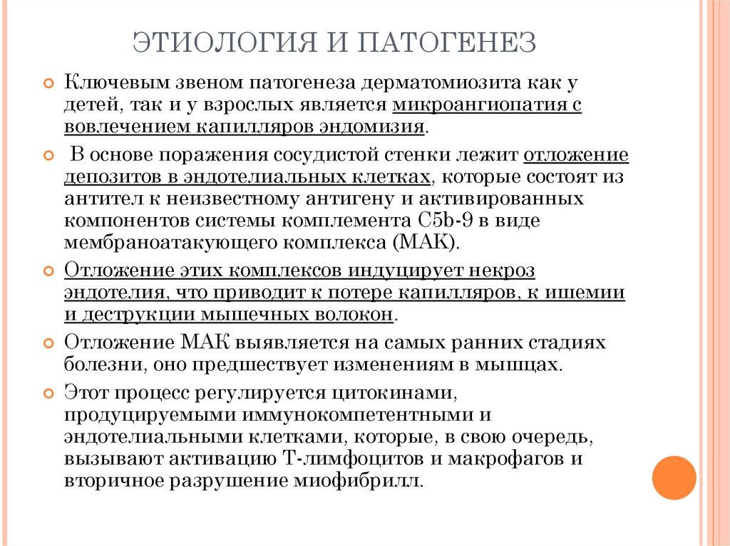 ЭТИОЛОГИЯ И ПАТОГЕНЕЗКлючевым звеном патогенеза дерматомиозита как у