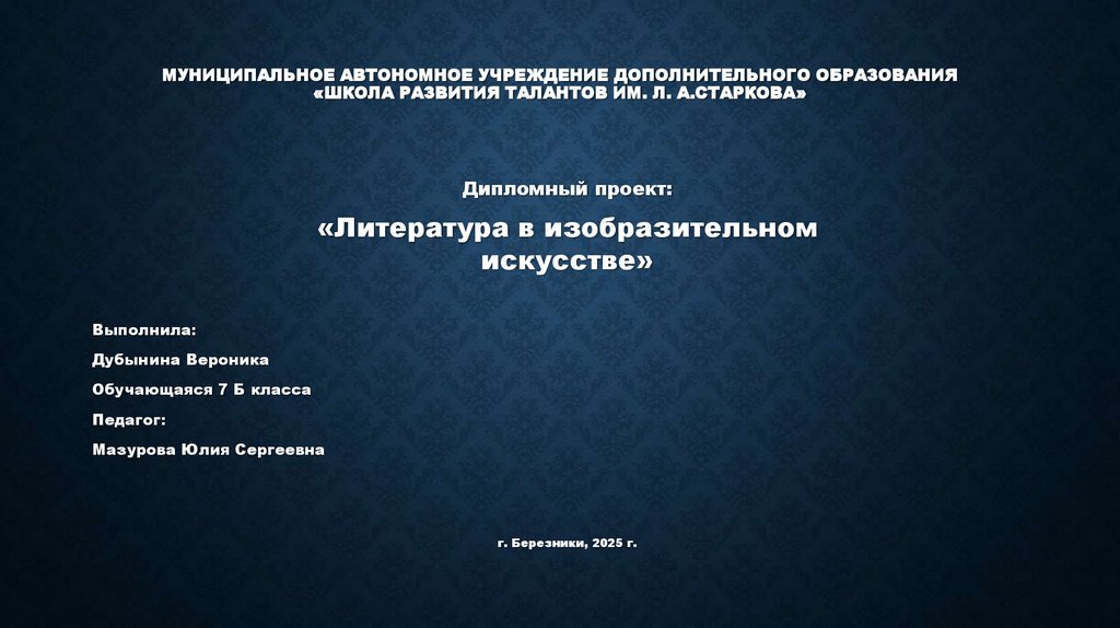 МУНИЦИПАЛЬНОЕ АВТОНОМНОЕ УЧРЕЖДЕНИЕ ДОПОЛНИТЕЛЬНОГО ОБРАЗОВАНИЯ«ШКОЛА РАЗВИТИЯ ТАЛАНТОВ ИМ. Л. А.СТАРКОВА»