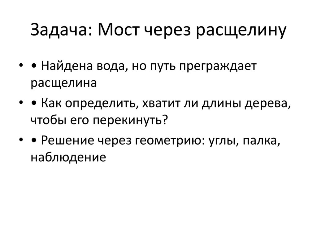 Задача: Мост через расщелину• • Найдена вода, но путь преграждает