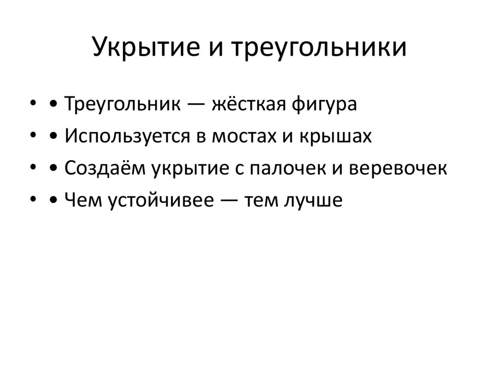 Укрытие и треугольники• • Треугольник — жёсткая фигура