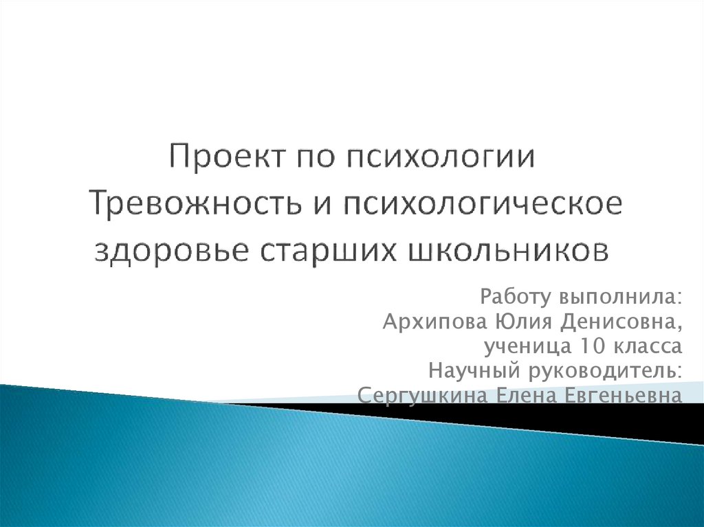 1. Проект по психологии Тревожность и психологическое здоровье старших школьников