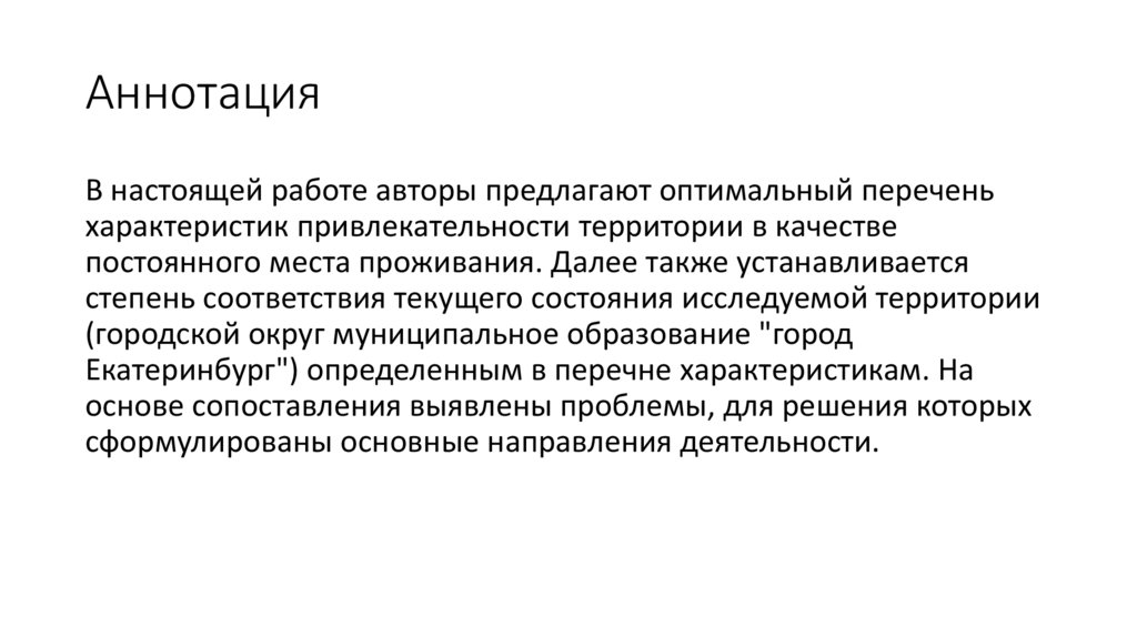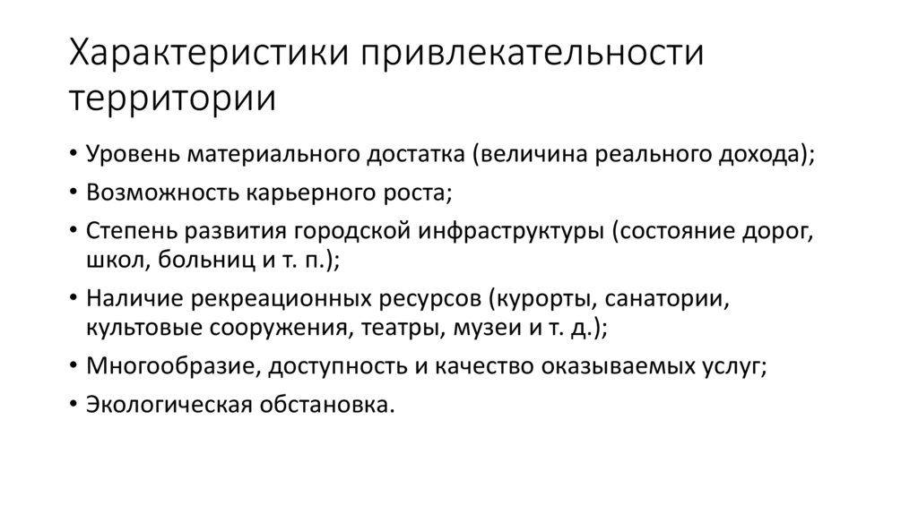 В настоящей работе авторы предлагают оптимальный переченьхарактеристик привлекательности территории в качестве