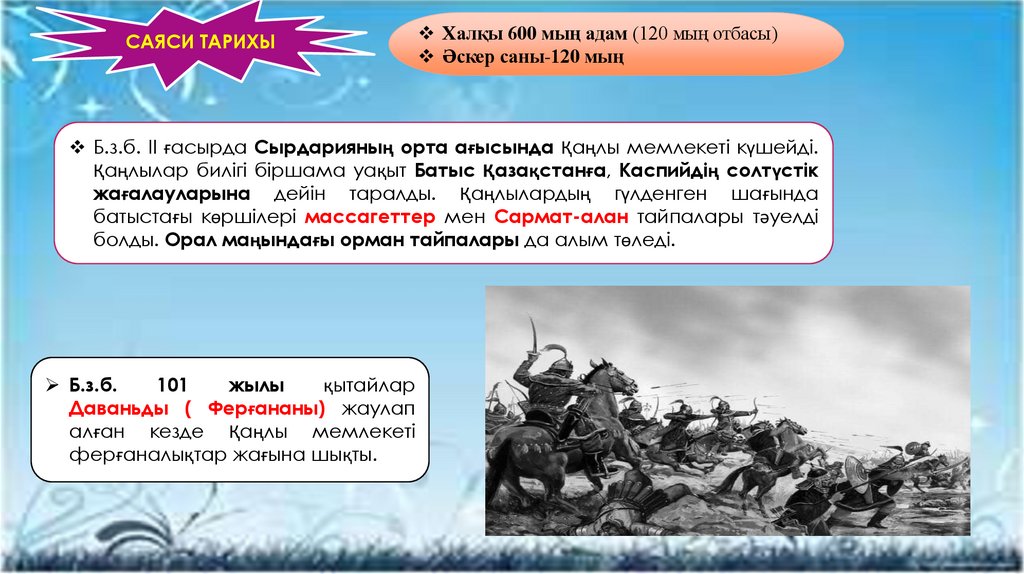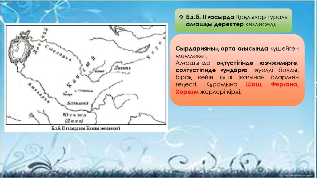 Б.з.б. ІІ ғасырда Сырдарияның орта ағысында Қаңлы мемлекеті күшейді.