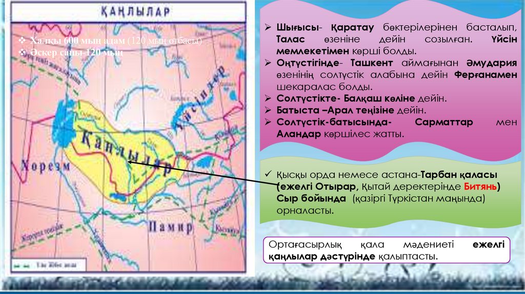 жағалауларына дейін таралды. Қаңлылардың гүлденген шағында