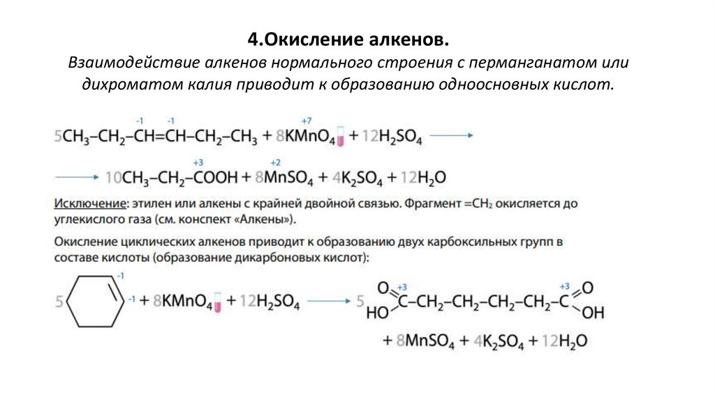 4.Окисление алкенов.Взаимодействие алкенов нормального строения с перманганатом или