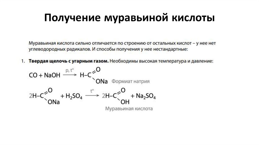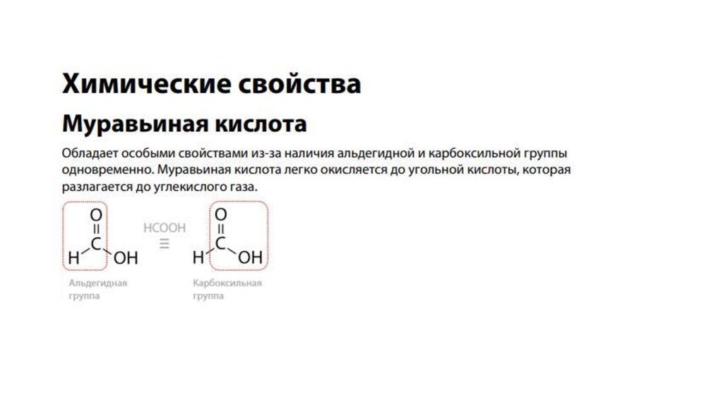– самая сильная из предельных одноосновных карбоновых кислот.