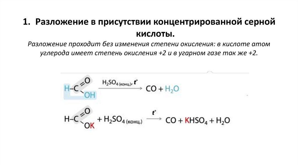 1. Разложение в присутствии концентрированной сернойкислоты.