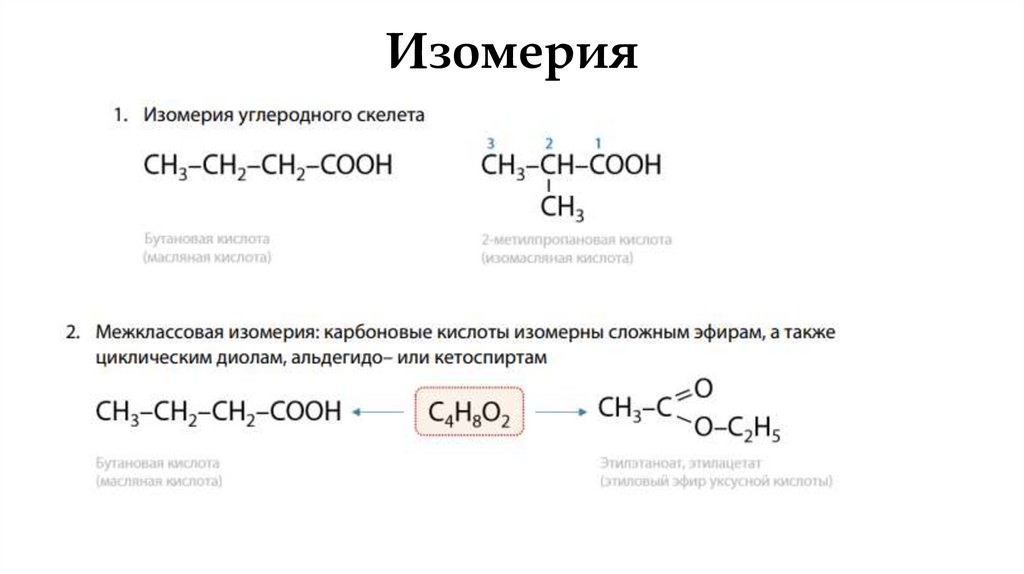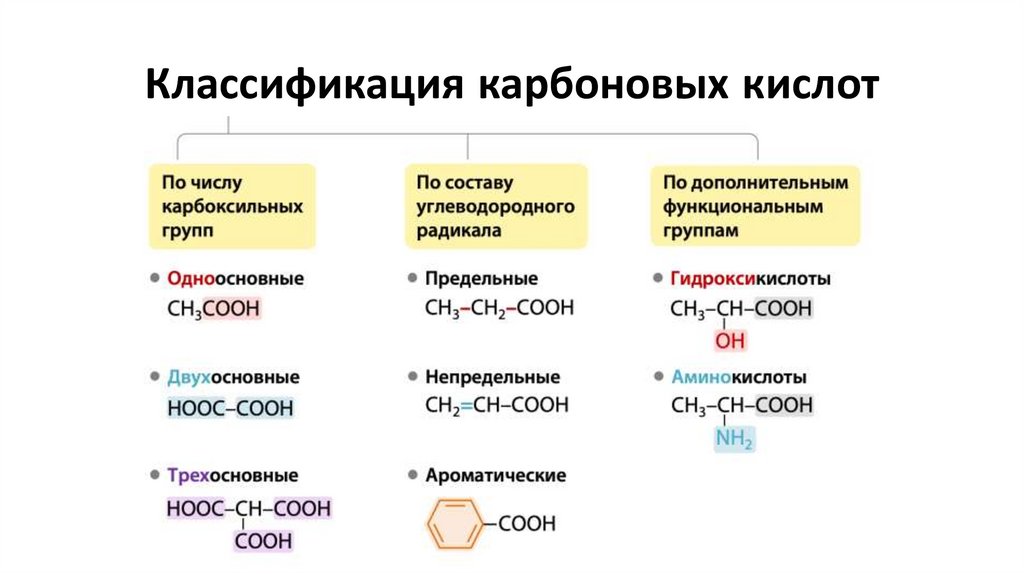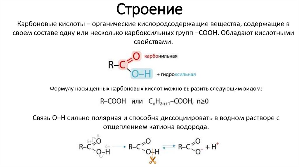 Карбоновые кислоты – органические кислородсодержащие вещества, содержащие всвоем составе одну или несколько карбоксильных групп –СООН. Обладают кислотными