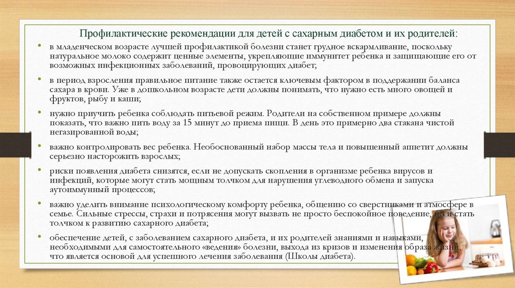 21. Профилактические рекомендации для детей с сахарным диабетом и их родителей:
