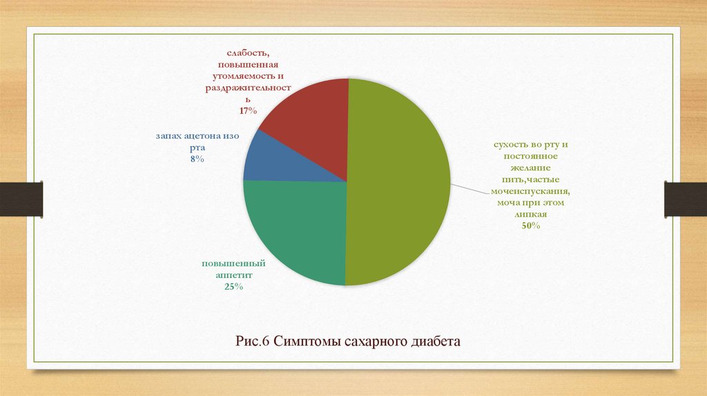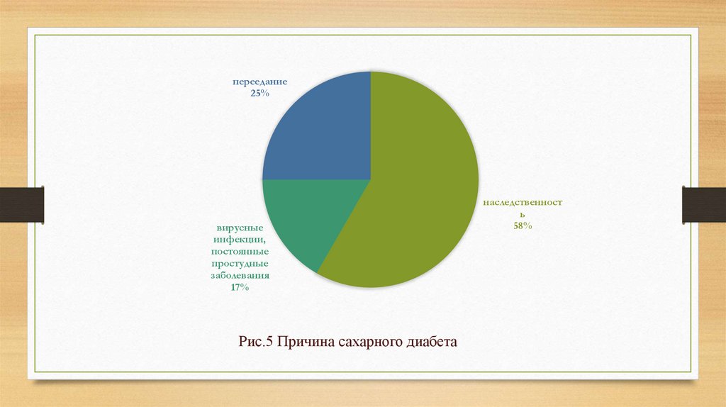родственников больных сахарным диабетом. У 25% опрошенных причиной является переедание, ведущее к ожирению, которое