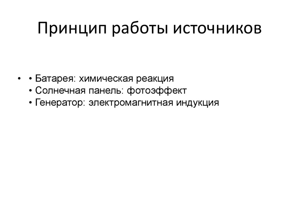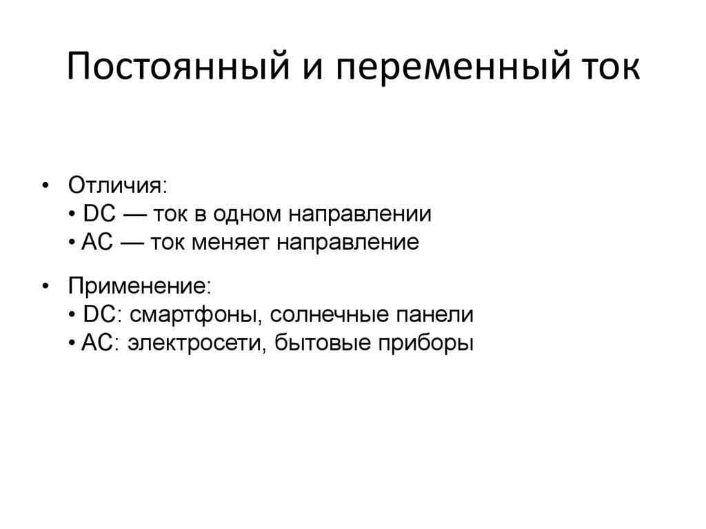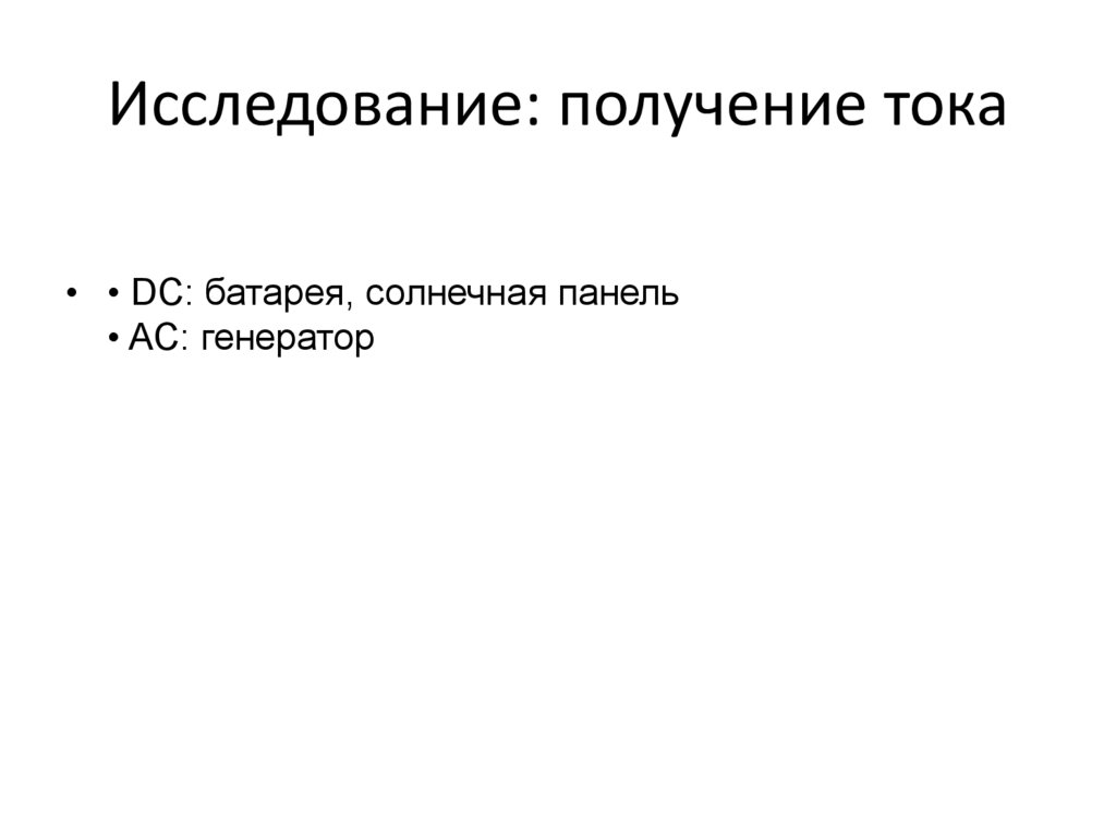 Исследование: получение тока• • DC: батарея, солнечная панель