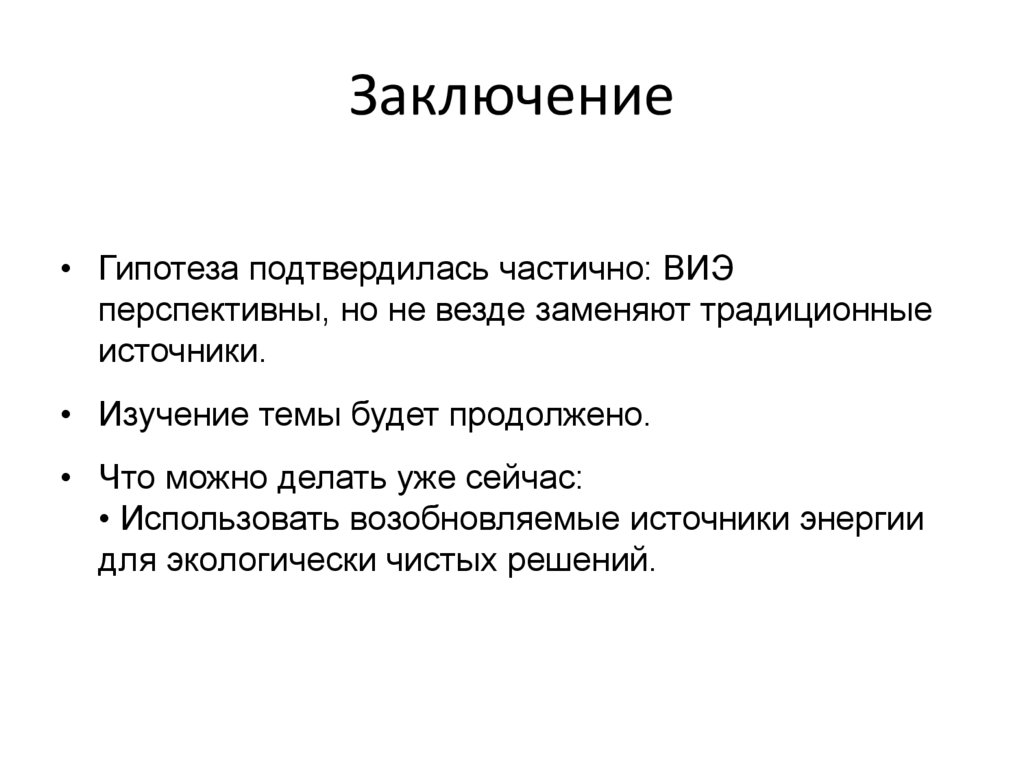 Заключение• Гипотеза подтвердилась частично: ВИЭ